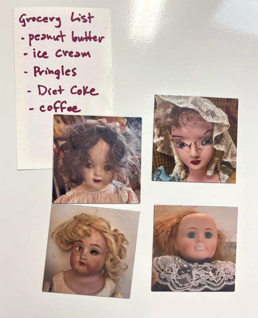 I’ve been photographing antique dolls for many years, fascinated by the multitude of faces, expressions, clothing and hair (or lack thereof). But it always came back to the eyes. Centering each photo on the eyes helps gazers notice tiny details while also contemplating who may have owned each doll over the years. Each emits an aura of nostalgia and beauty, both familiar and unexpected, and I affectionately call them “lovingly creepy.”